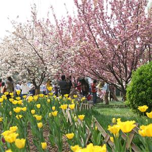 樱缤之路:1994年从?;ㄔ耙圃缘?株关山和普贤象,因该区域小环境优越,长势旺盛。阳春4月,她们在朝辉和夕阳里倚墙怒放,形成了公园东部灿烂一景。近年来这里又陆续补植了松月、染井吉野等品种,使得赏樱时间提前到了3月下旬。 详情>>